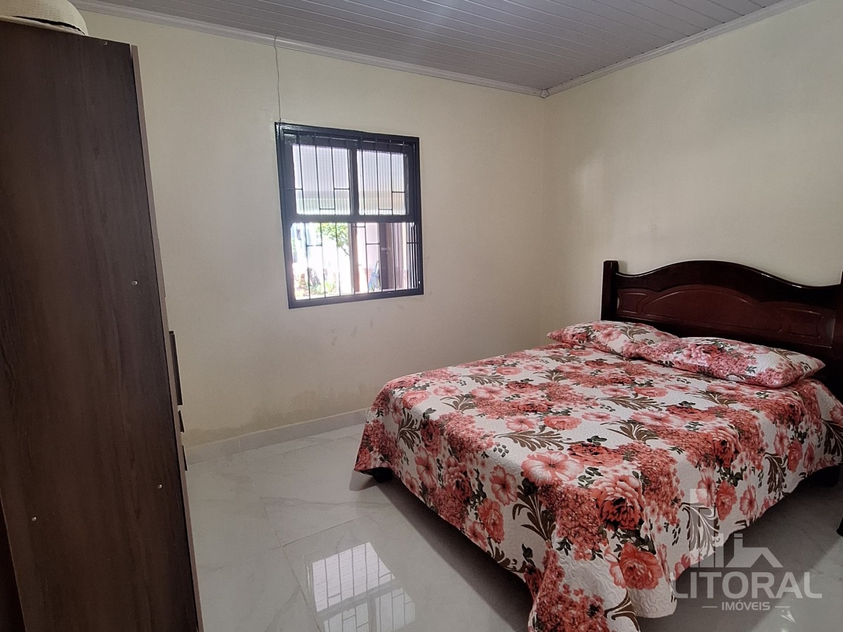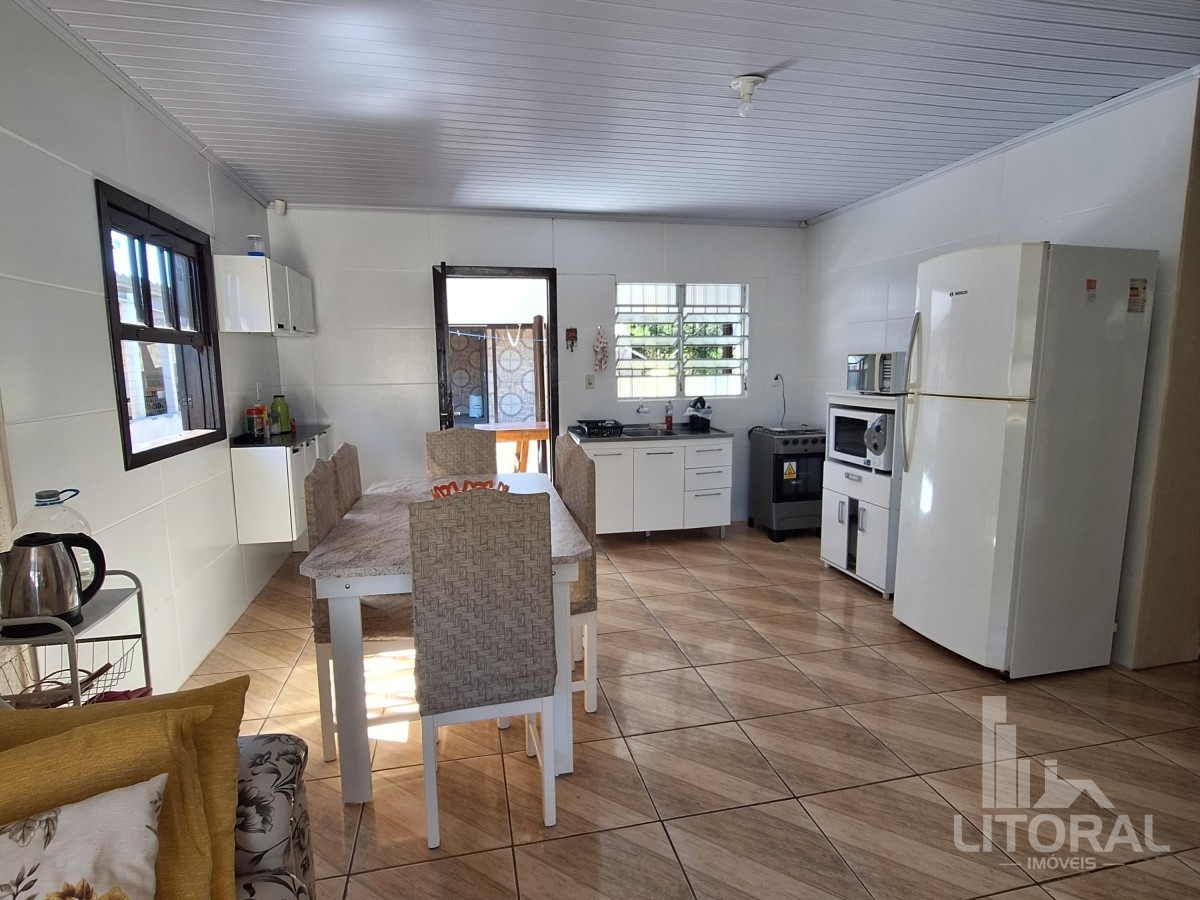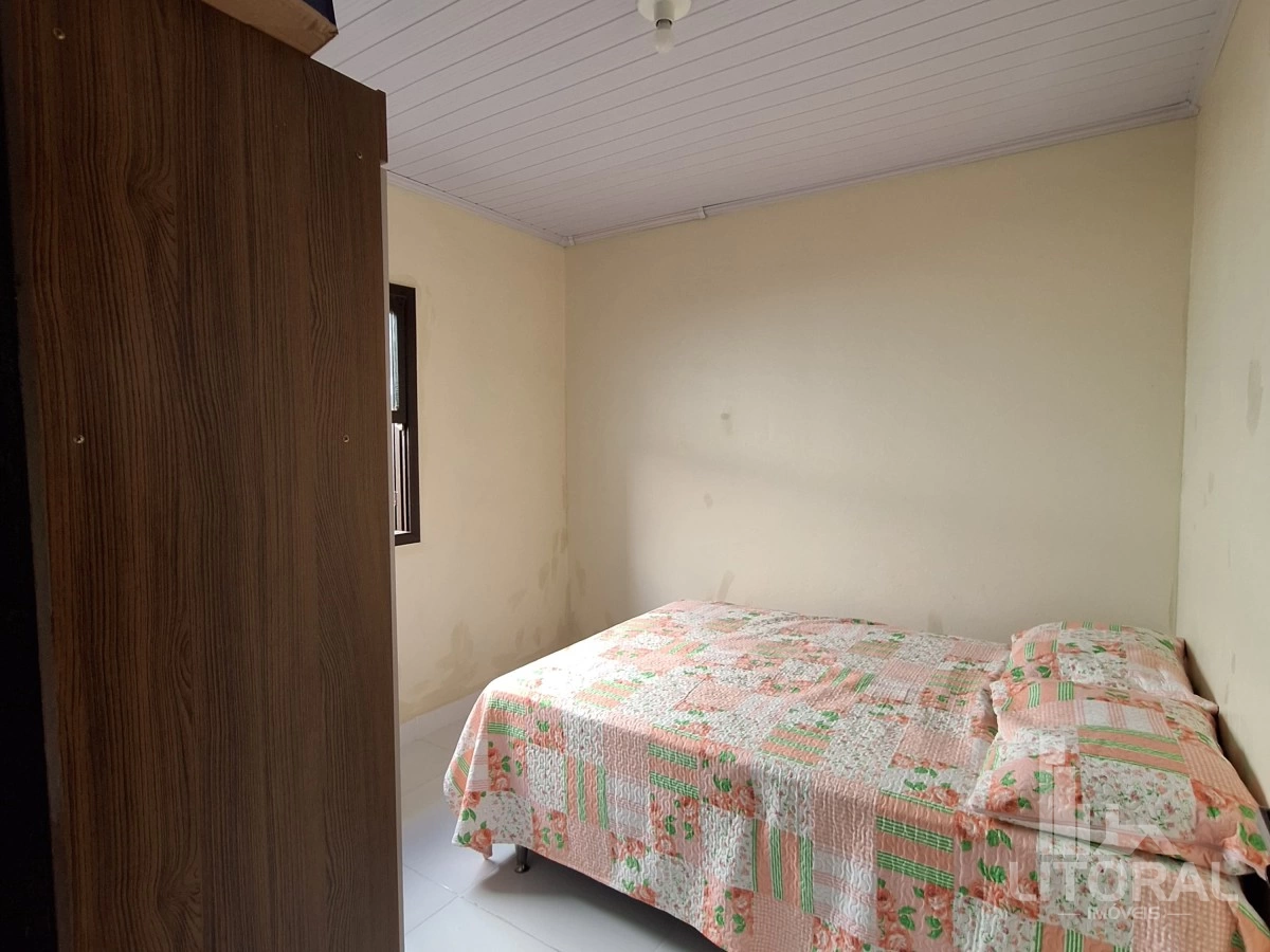 Conforto e praticidade em um só lugar! Localizada perto da praia, mercado e fruteira, essa casa é perfeita para quem busca qualidade de vida. Conta com três dormitórios, sala e cozinha integradas, banheiro social e lavanderia. Nos fundos, uma ampla varanda com banheiro, além de uma garagem coberta com churrasqueira. O jardim, repleto de flores e horta, completa o charme deste lar. Agende sua visita! Mobiliada, medindo 100 metros quadrados aproximadamente.