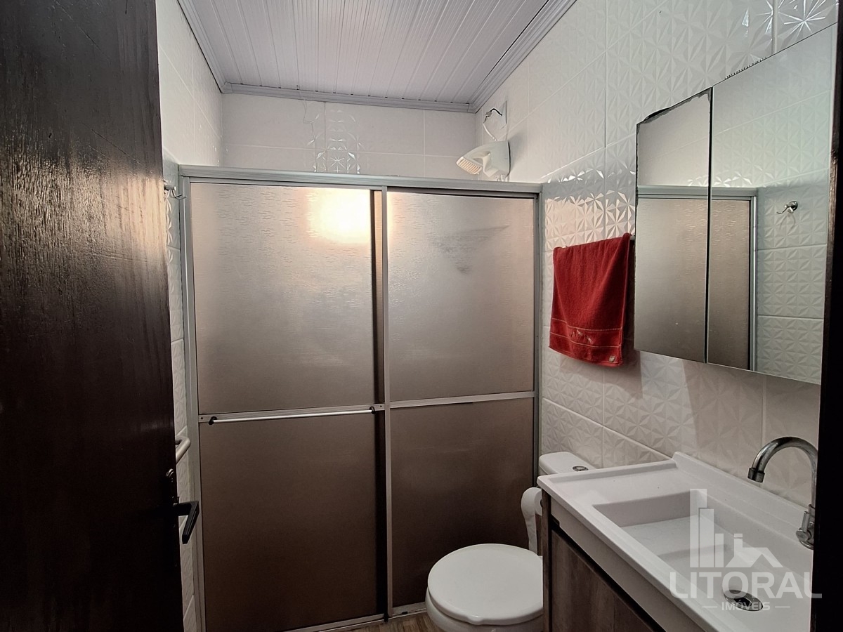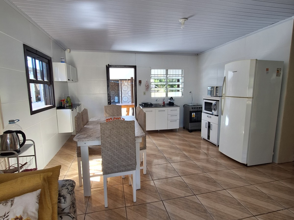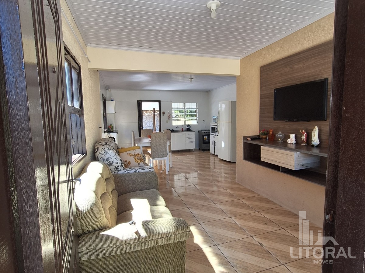 Conforto e praticidade em um só lugar! Localizada perto da praia, mercado e fruteira, essa casa é perfeita para quem busca qualidade de vida. Conta com três dormitórios, sala e cozinha integradas, banheiro social e lavanderia. Nos fundos, uma ampla varanda com banheiro, além de uma garagem coberta com churrasqueira. O jardim, repleto de flores e horta, completa o charme deste lar. Agende sua visita! Mobiliada, medindo 100 metros quadrados aproximadamente.