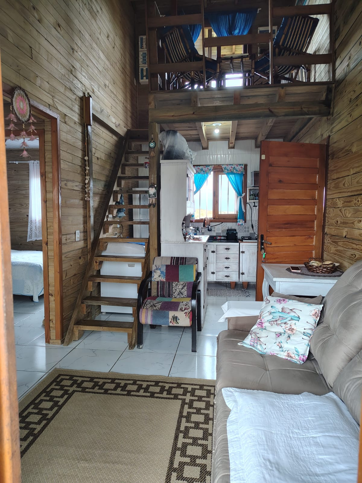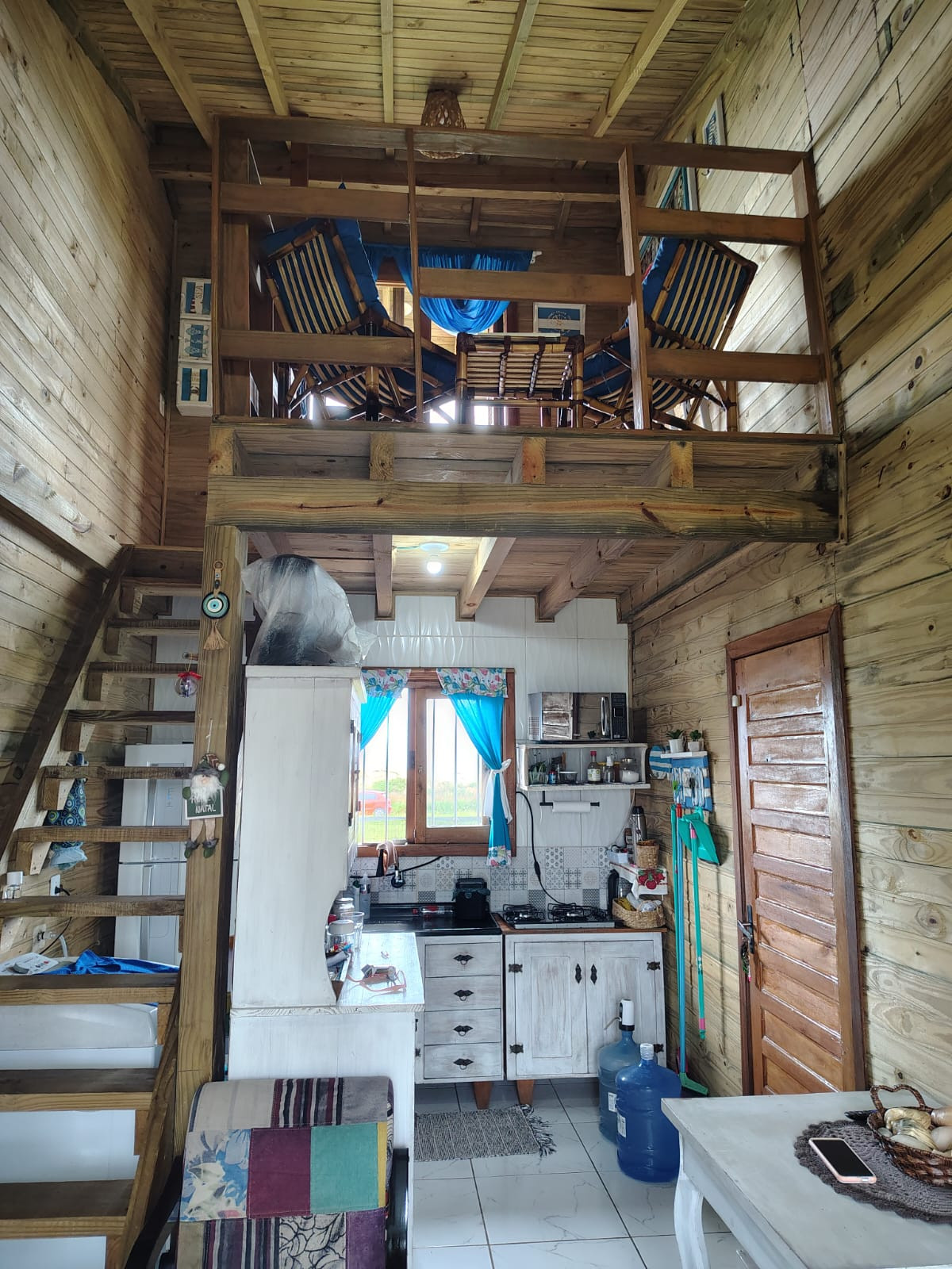 Mezanino com sacada de frente para o mar